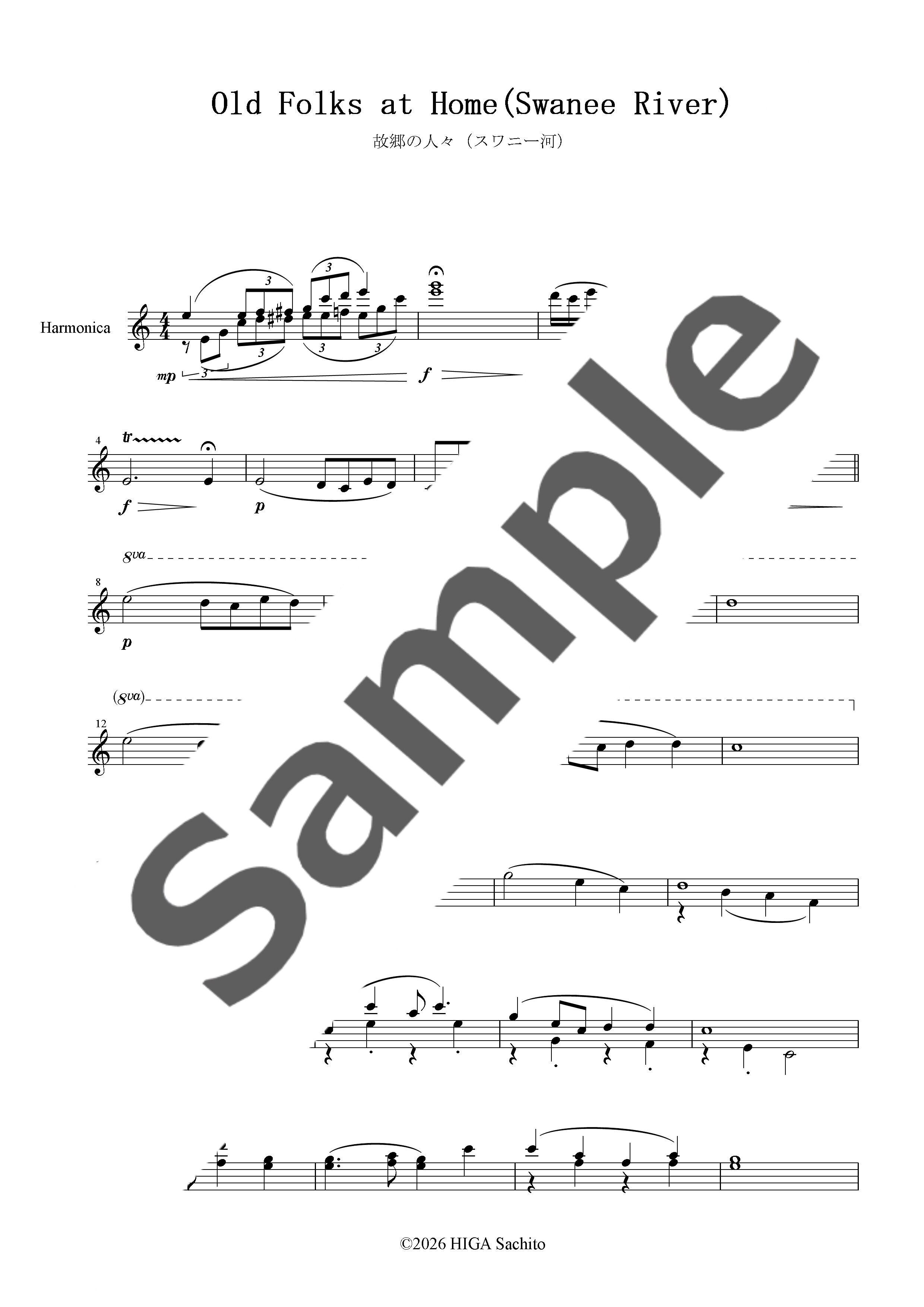 クロマティック・ハーモニカ一本で演奏できるように編曲された、無伴奏ソロ楽譜です。