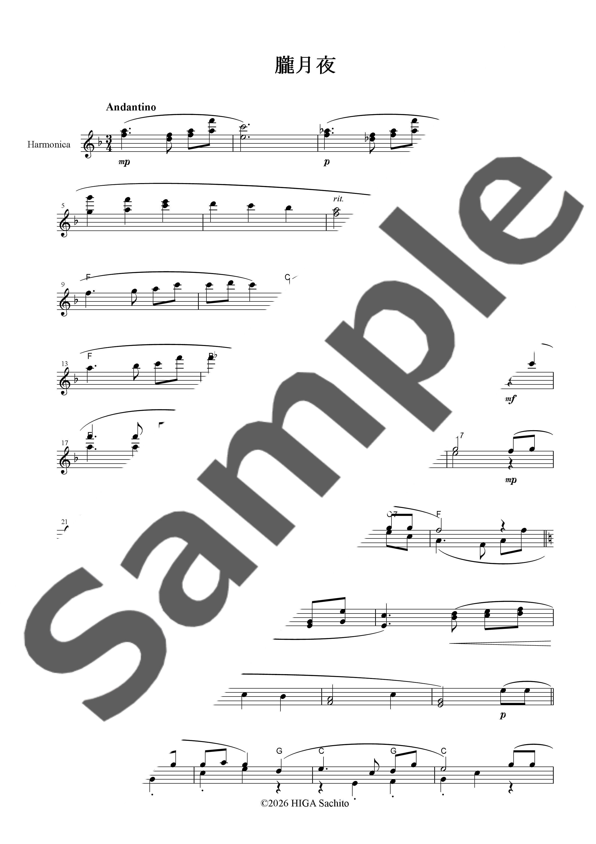 クロマティック・ハーモニカ一本で演奏できるように編曲された、無伴奏ソロ楽譜です。
